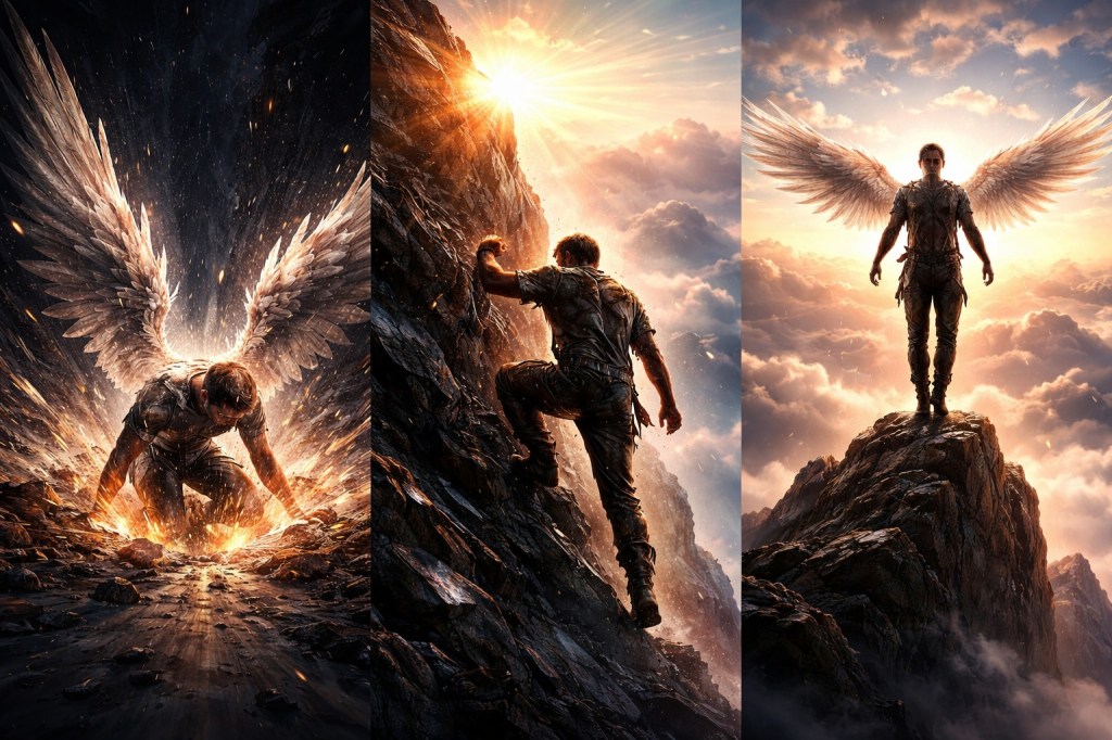 In altre parole, il percorso dell’uomo attraversa tre fasi fondamentali: la caduta, la risalita e l’equilibrio.