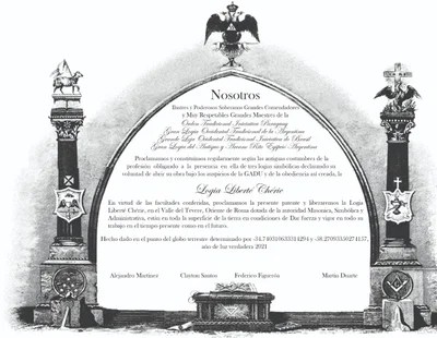 del mese di maggio dell’anno duemilaventuno dell’era volgare; Invocando la benedizione del SOL∴ LA∴ RE∴ U∴ e la Luce dei Maestri che ci hanno preceduto, noi