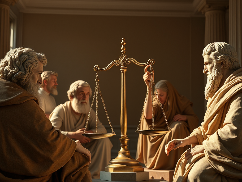 È uno dei pilastri fondamentali della filosofia politica e morale ed è stato oggetto di riflessione dagli antichi filosofi greci ai pensatori contemporanei. A livello di base, la giustizia si riferisce all’idea di trattare le persone in modo equo, rispettando i loro diritti e assicurando che venga loro dato ciò che spetta loro. Tuttavia, ciò che significa “dare a ciascuno ciò che gli spetta” è un argomento profondamente discusso e varie correnti filosofiche offrono risposte diverse.